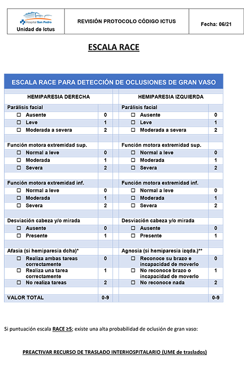 Escala RACE para detección de oclusiones de gran vaso.
