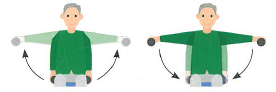 - Abducción de brazos: Abrir los brazos hasta la altura de los hombros. Manténgalos de 3 a 5 segundos y bájelos.